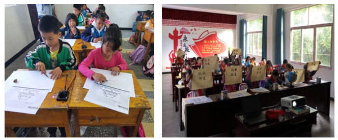 書畫課上,志愿者從文房四寶入手介紹軟筆書法基本用具,示范執筆姿勢和運腕方法,遠程指導孩子們練習書寫“我愛國新”。同時,學生們學習了素描握筆、排線、打型的基本方法,與志愿者一起繪畫“我愛北京天安門”。學生們交出了出色的習作,他們認真學習的態度感動了現場的青年志愿者們。