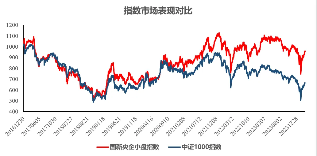 中證國新央企小盤指數與中證1000指數市場表現對比