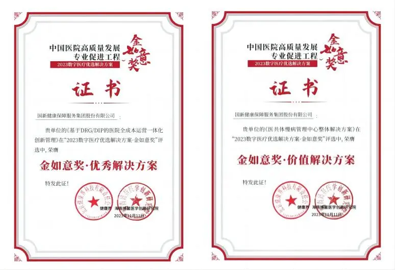國新健康獲評第三屆“金如意獎”兩個獎項