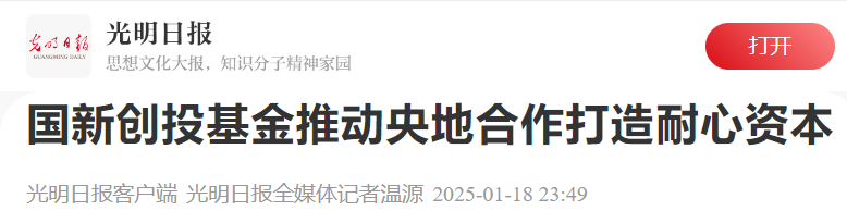 今天,推出系列報道第3期:光明日報推出的《國新創投基金推動央地合作打造耐心資本》。