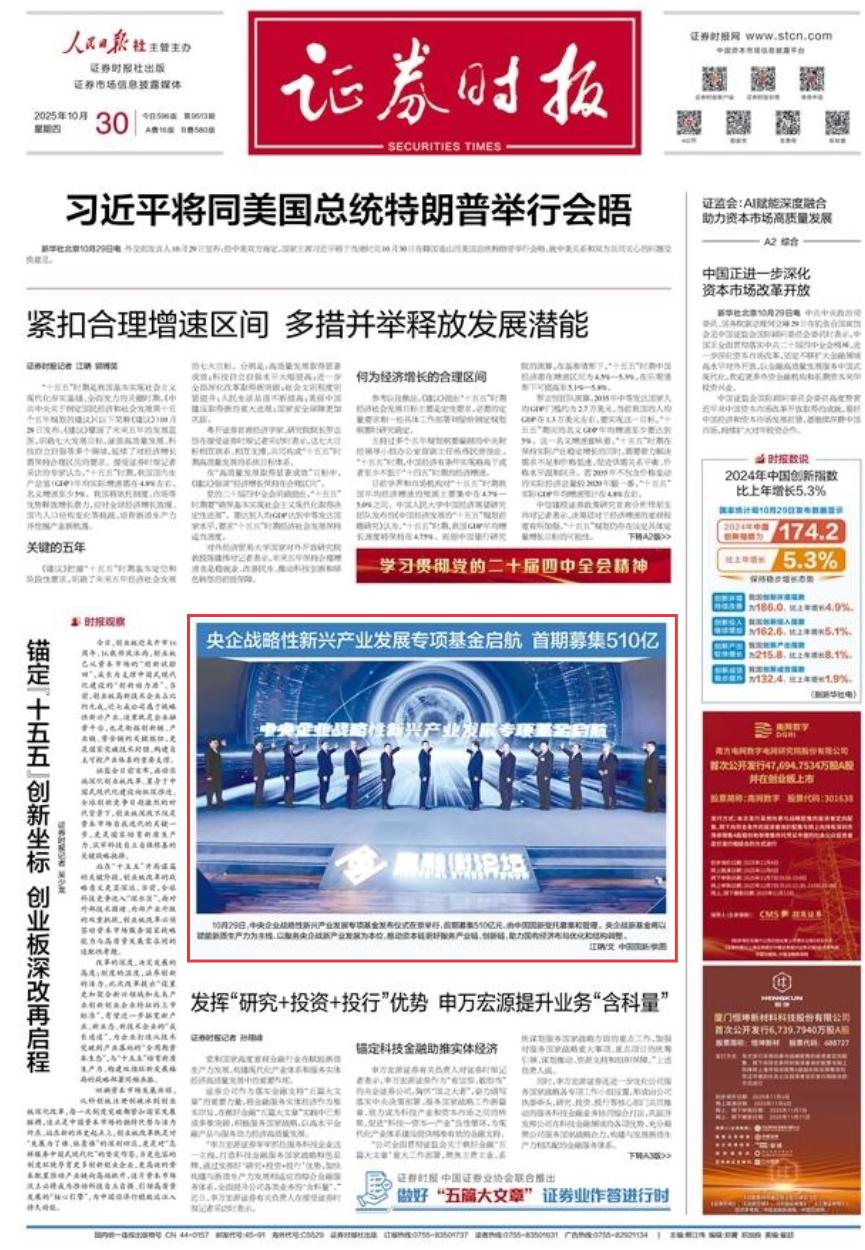 證券時報頭版刊發《央企戰略性新興產業發展專項基金啟航 首期募集510億》圖片新聞