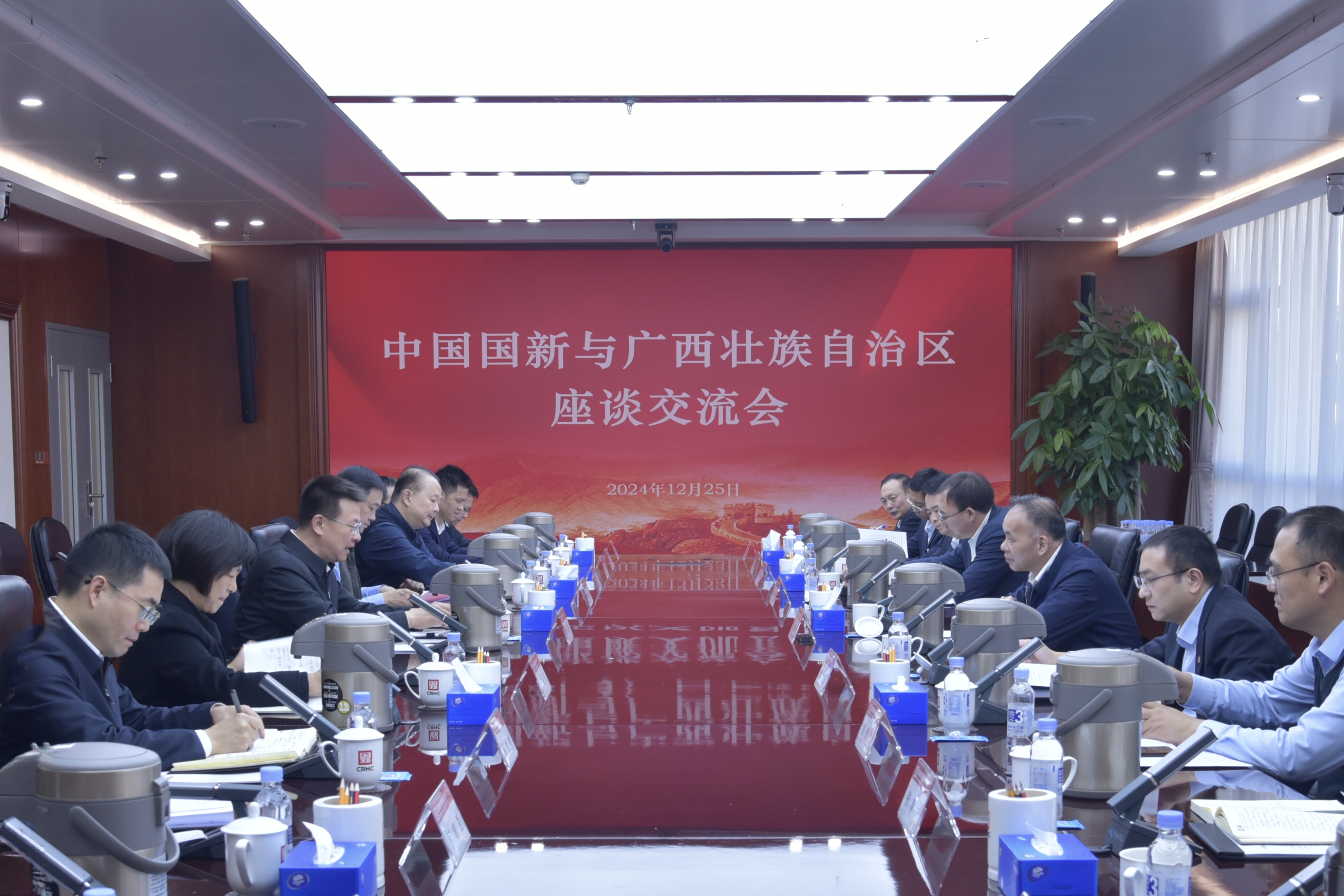 12月25日,中國國新黨委副書記、董事、總經理莫德旺在公司總部會見廣西壯族自治區副主席、國資委黨委書記胡帆。