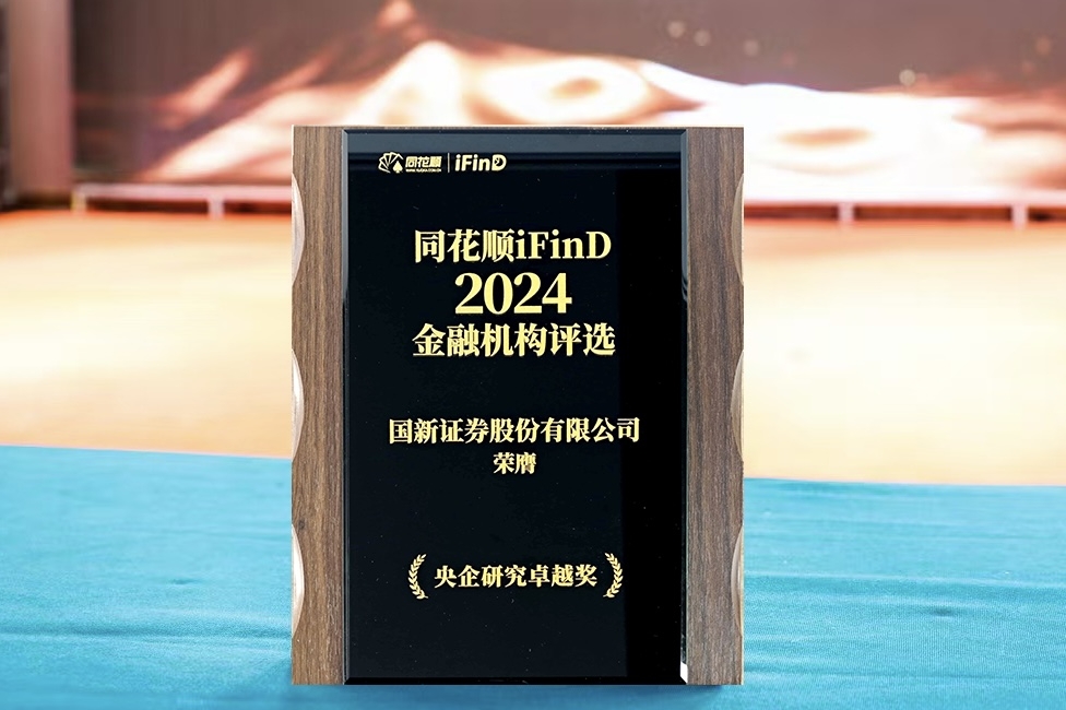 日前,同花順2024金融機構評選結果揭曉,國新證券獲“央企研究卓越獎”。