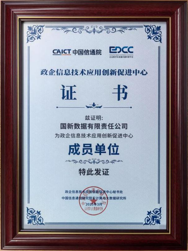 3月26日,在政企信息技術應用創新促進中心(以下簡稱促進中心)2025年年會上,國新數據正式成為促進中心成員單位。