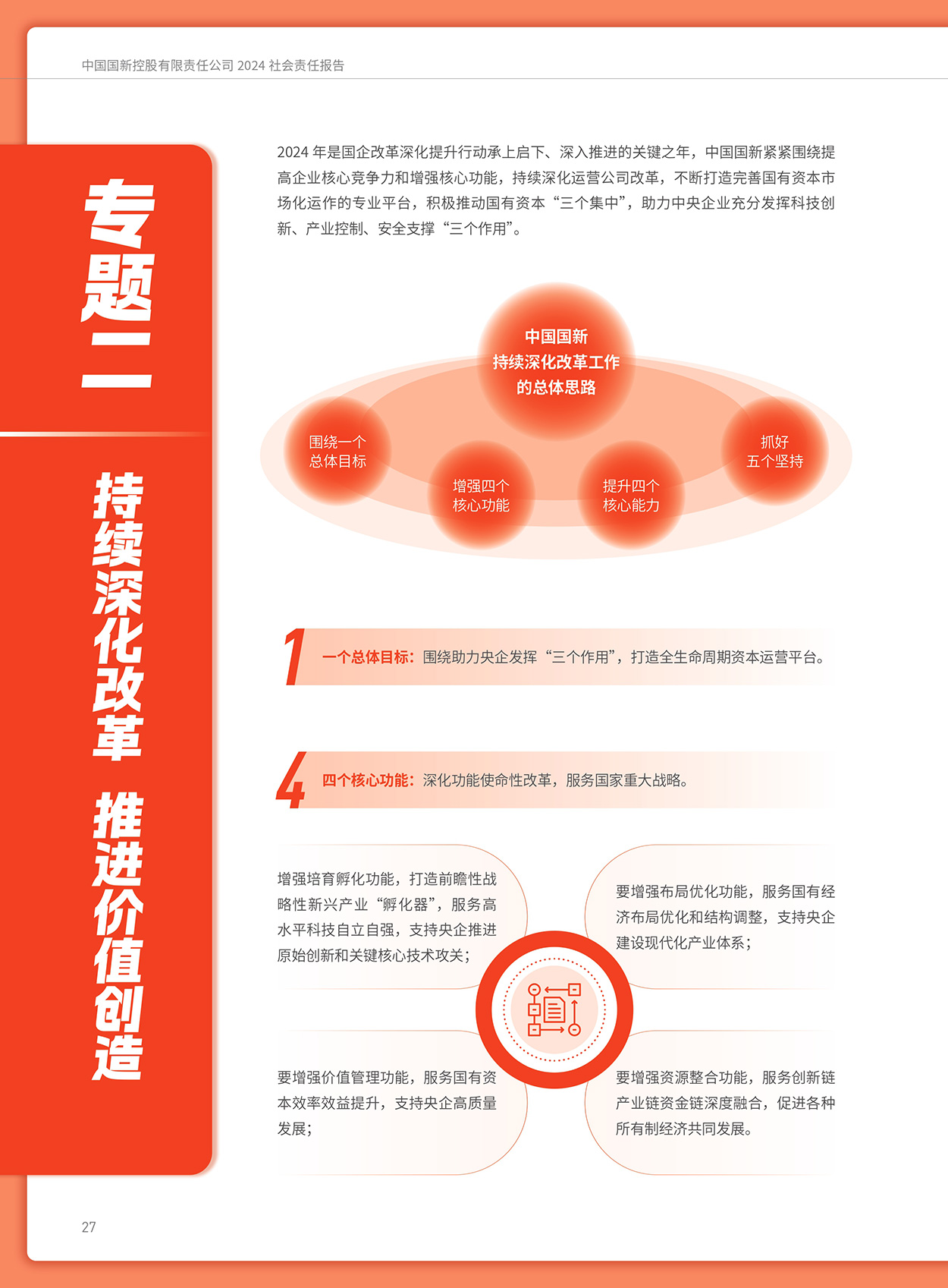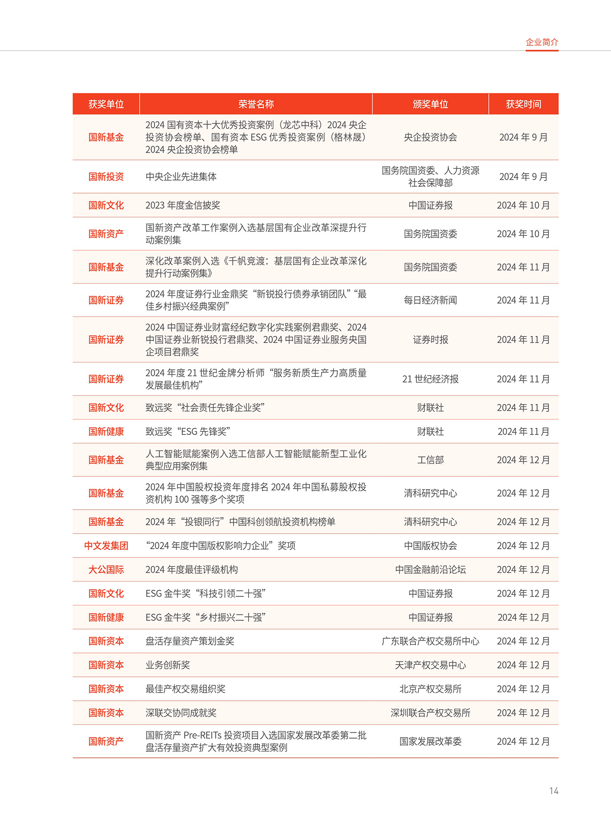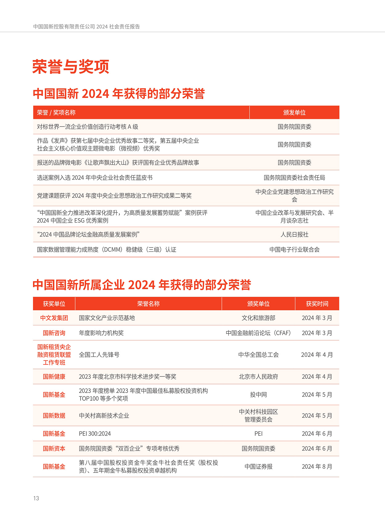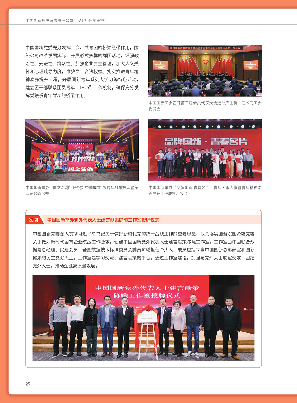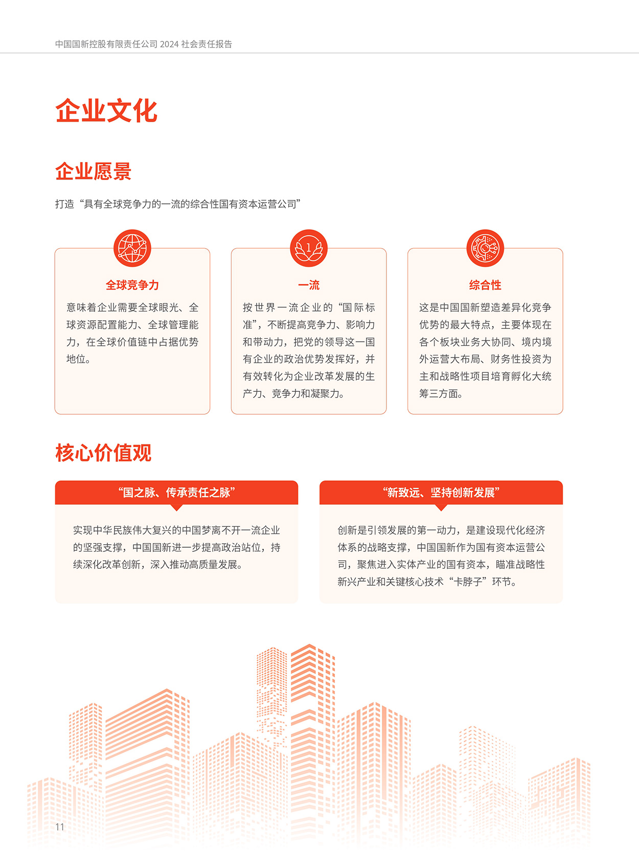本報告是中國國新控股有限責任公司發布的第14份社會責任報告,反映中國國新2024年度在履行經濟責任、政治責任、社會責任中促進企業改革發展、員工成長及構建和諧企業等方面的實踐和績效,旨在積極回應利益相關方的關注,為各利益相關方提供便捷的溝通渠道。