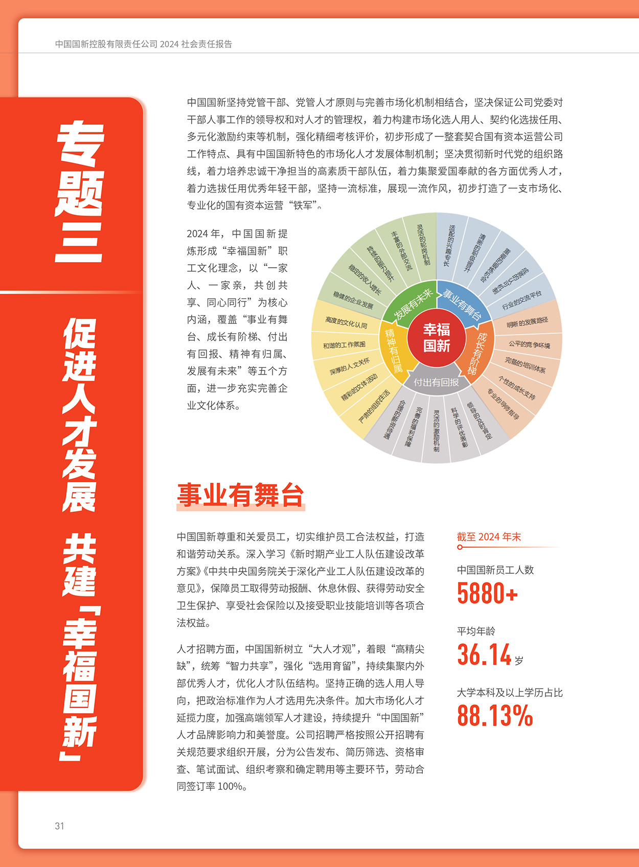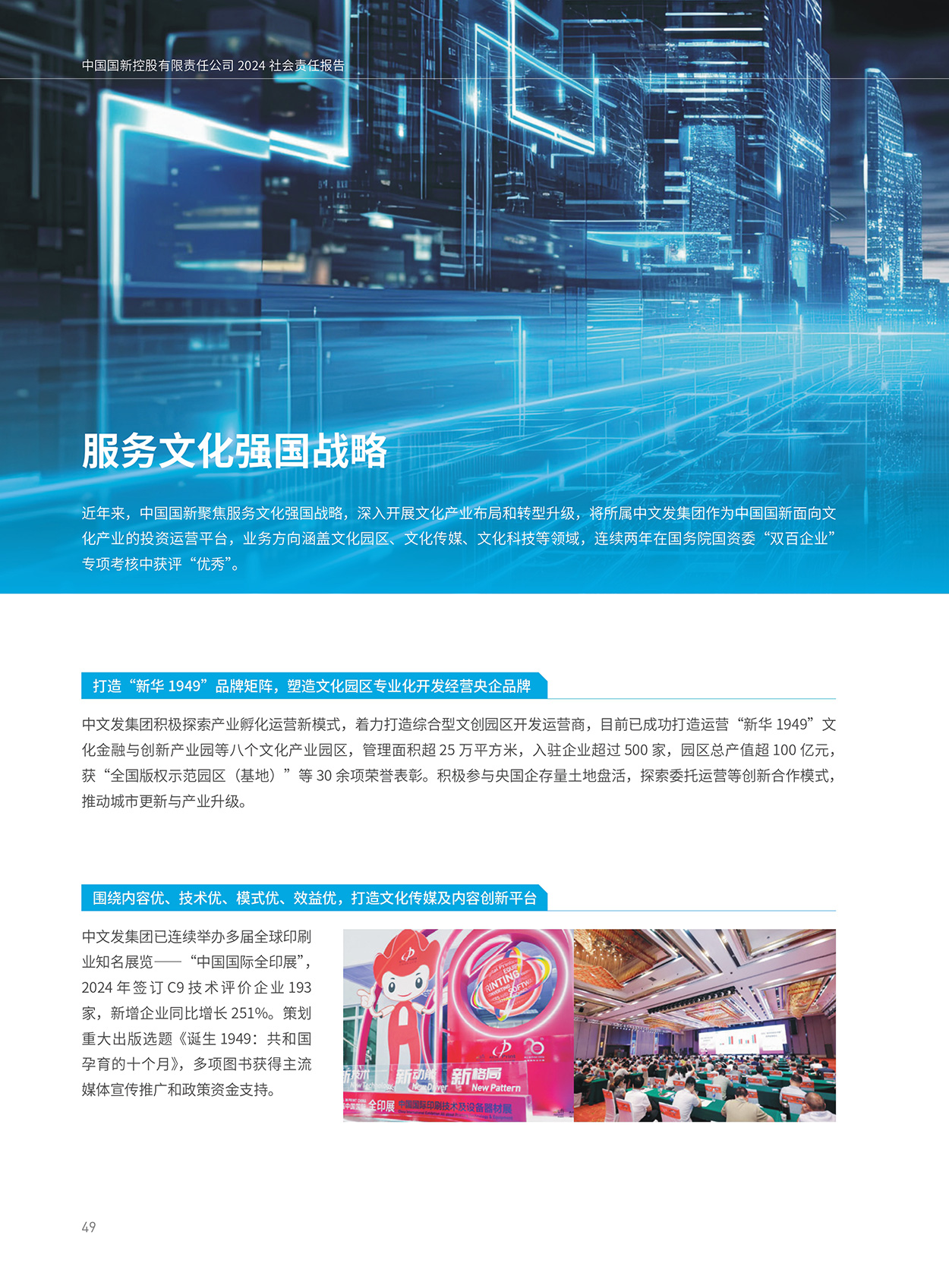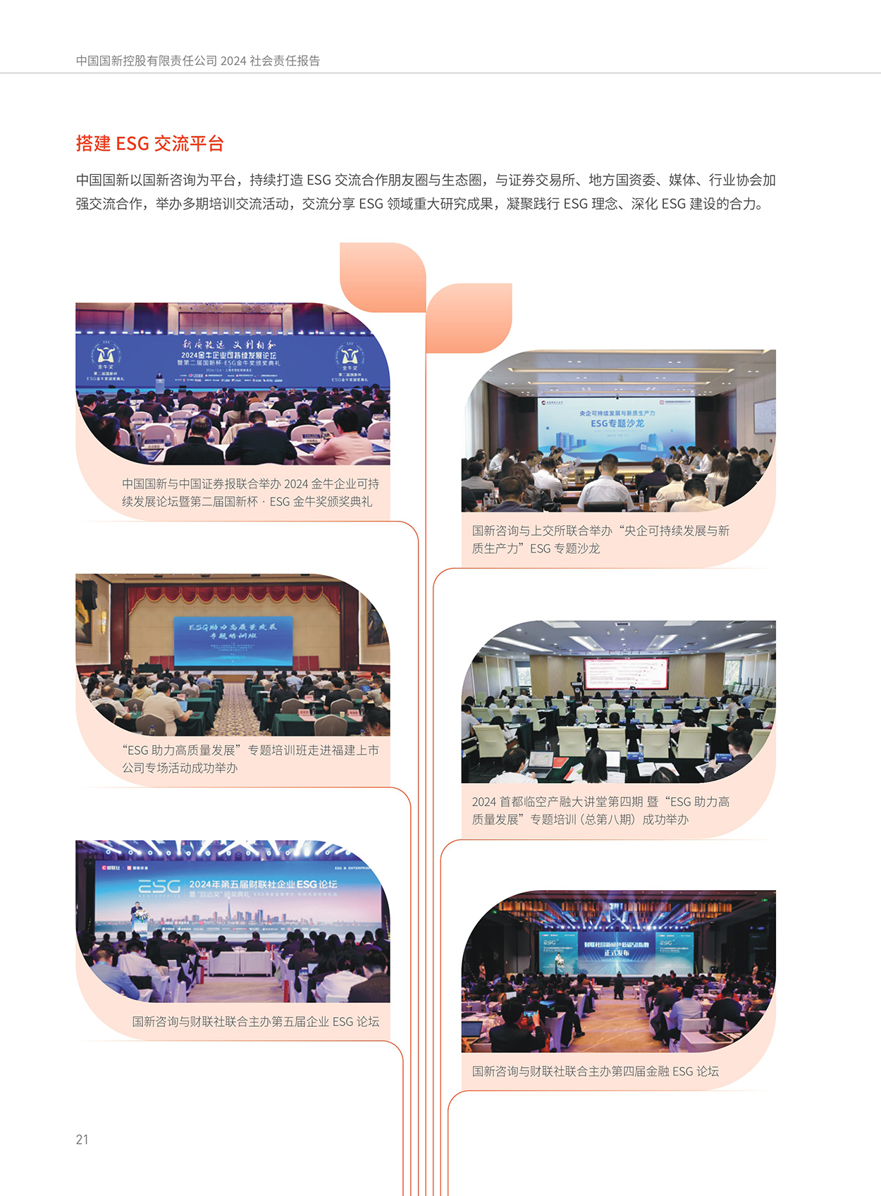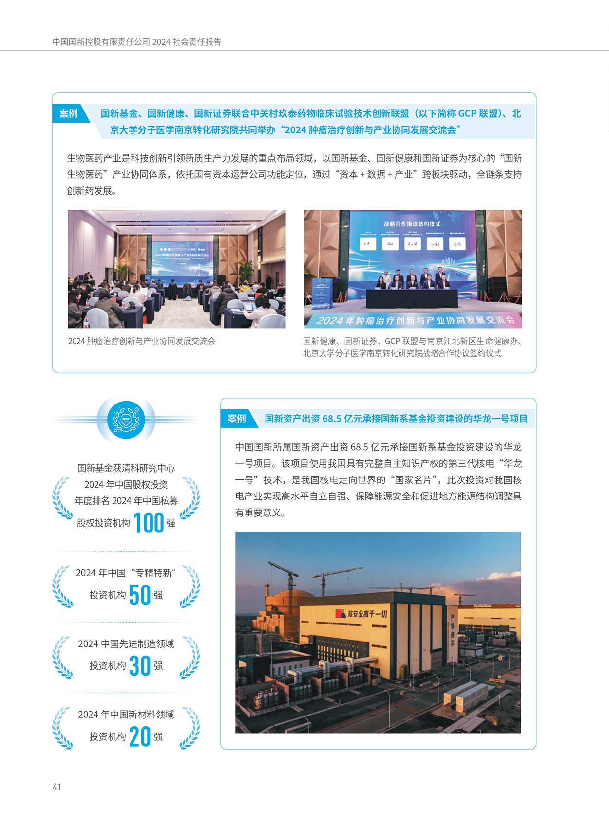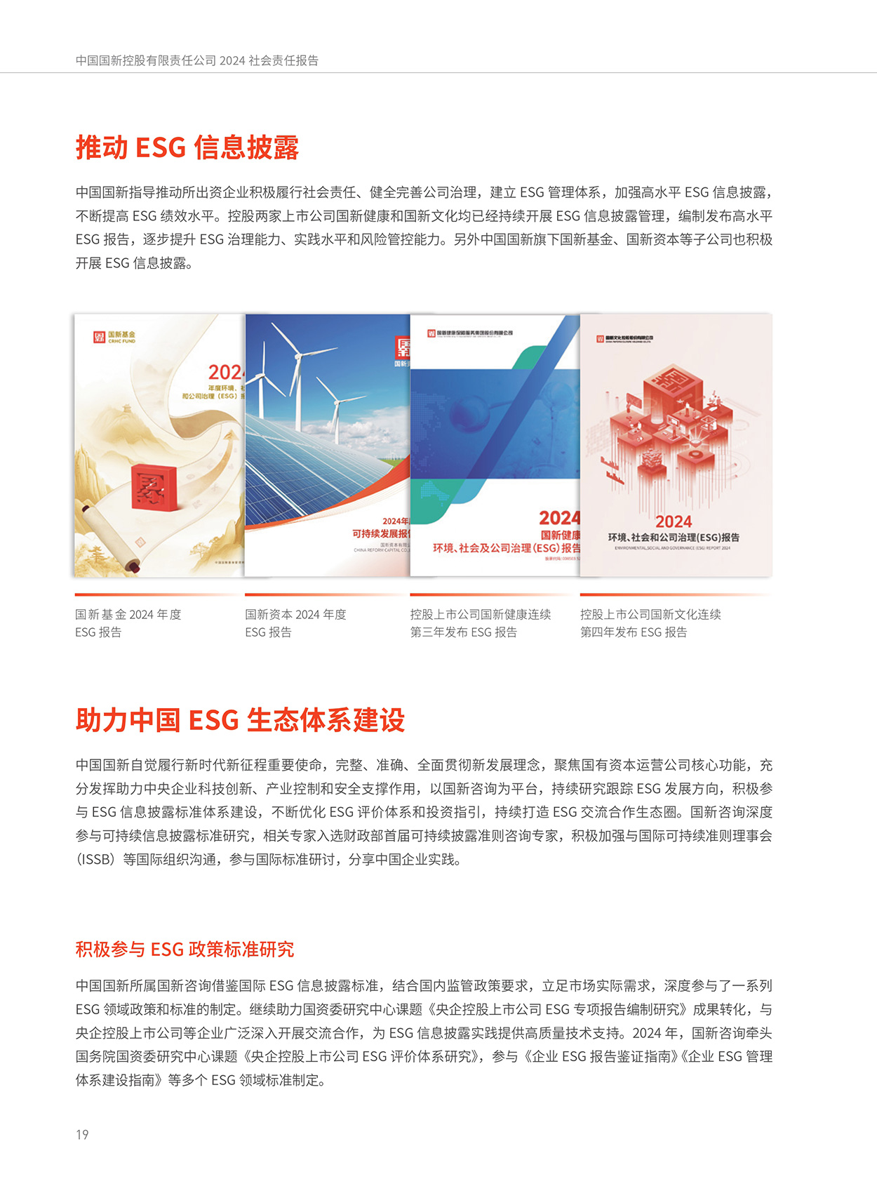 本報告是中國國新控股有限責任公司發布的第14份社會責任報告,反映中國國新2024年度在履行經濟責任、政治責任、社會責任中促進企業改革發展、員工成長及構建和諧企業等方面的實踐和績效,旨在積極回應利益相關方的關注,為各利益相關方提供便捷的溝通渠道。