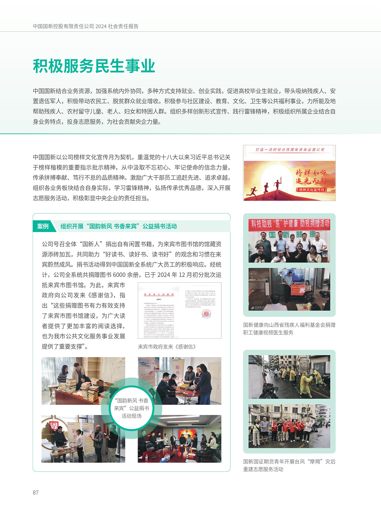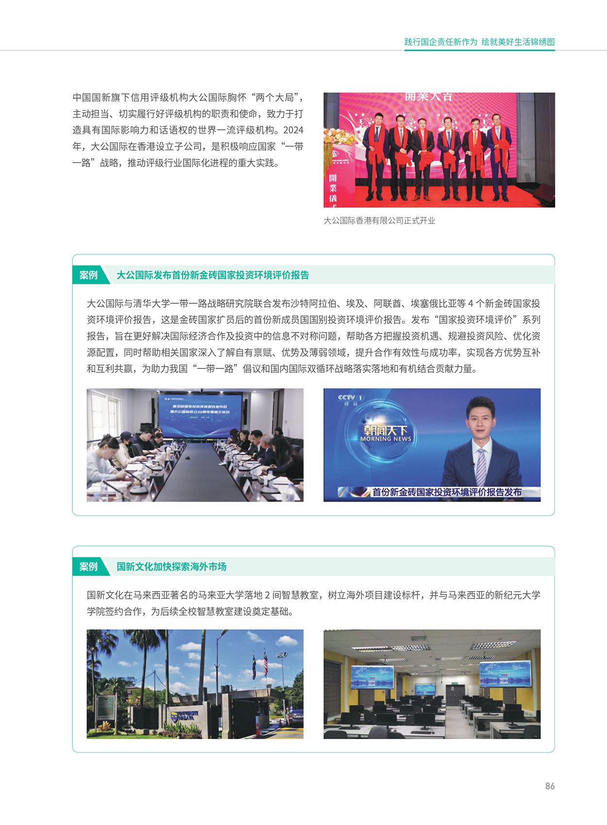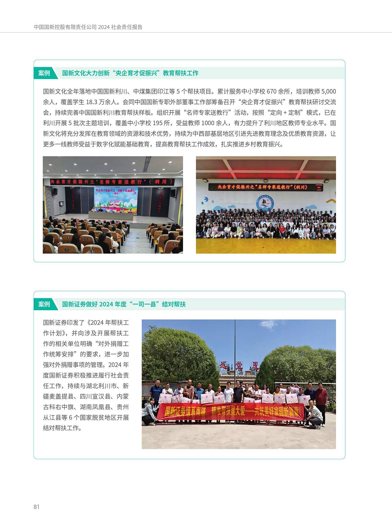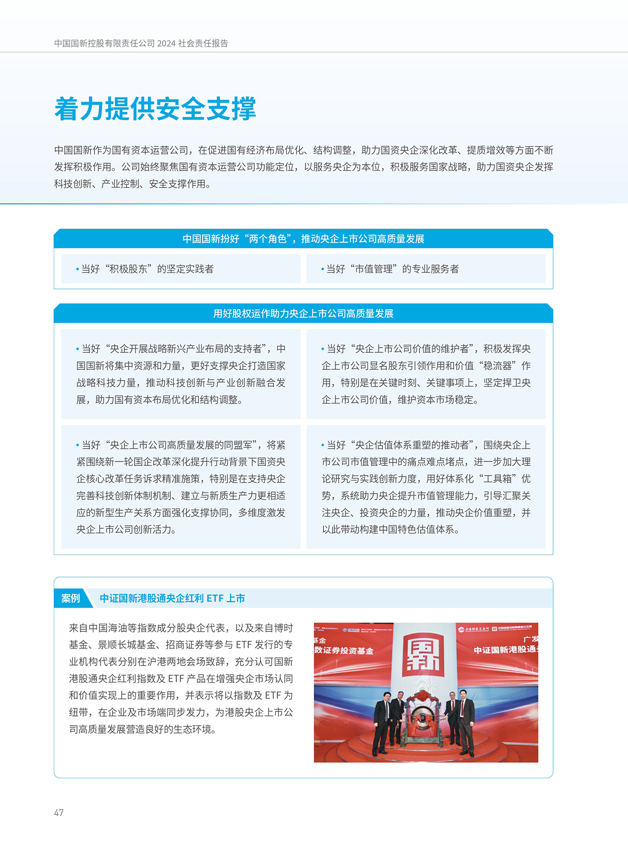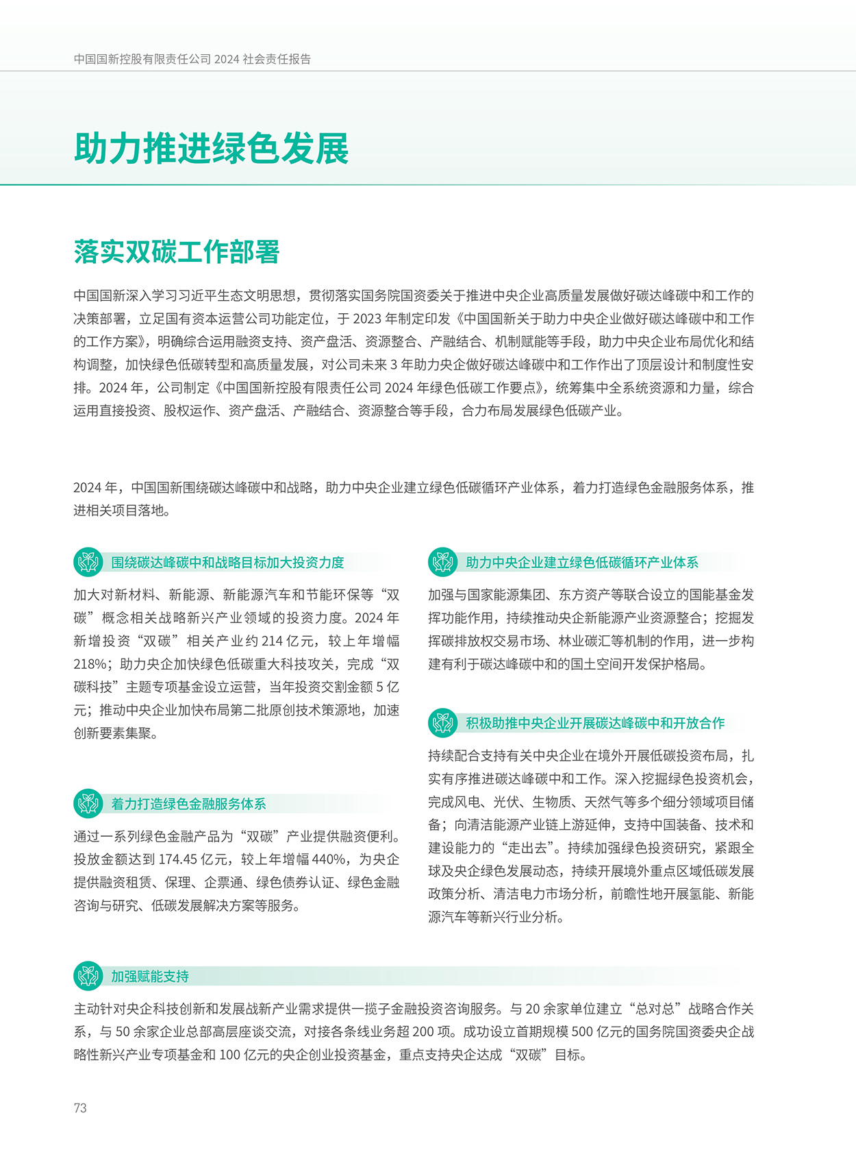 本報告是中國國新控股有限責任公司發布的第14份社會責任報告,反映中國國新2024年度在履行經濟責任、政治責任、社會責任中促進企業改革發展、員工成長及構建和諧企業等方面的實踐和績效,旨在積極回應利益相關方的關注,為各利益相關方提供便捷的溝通渠道。