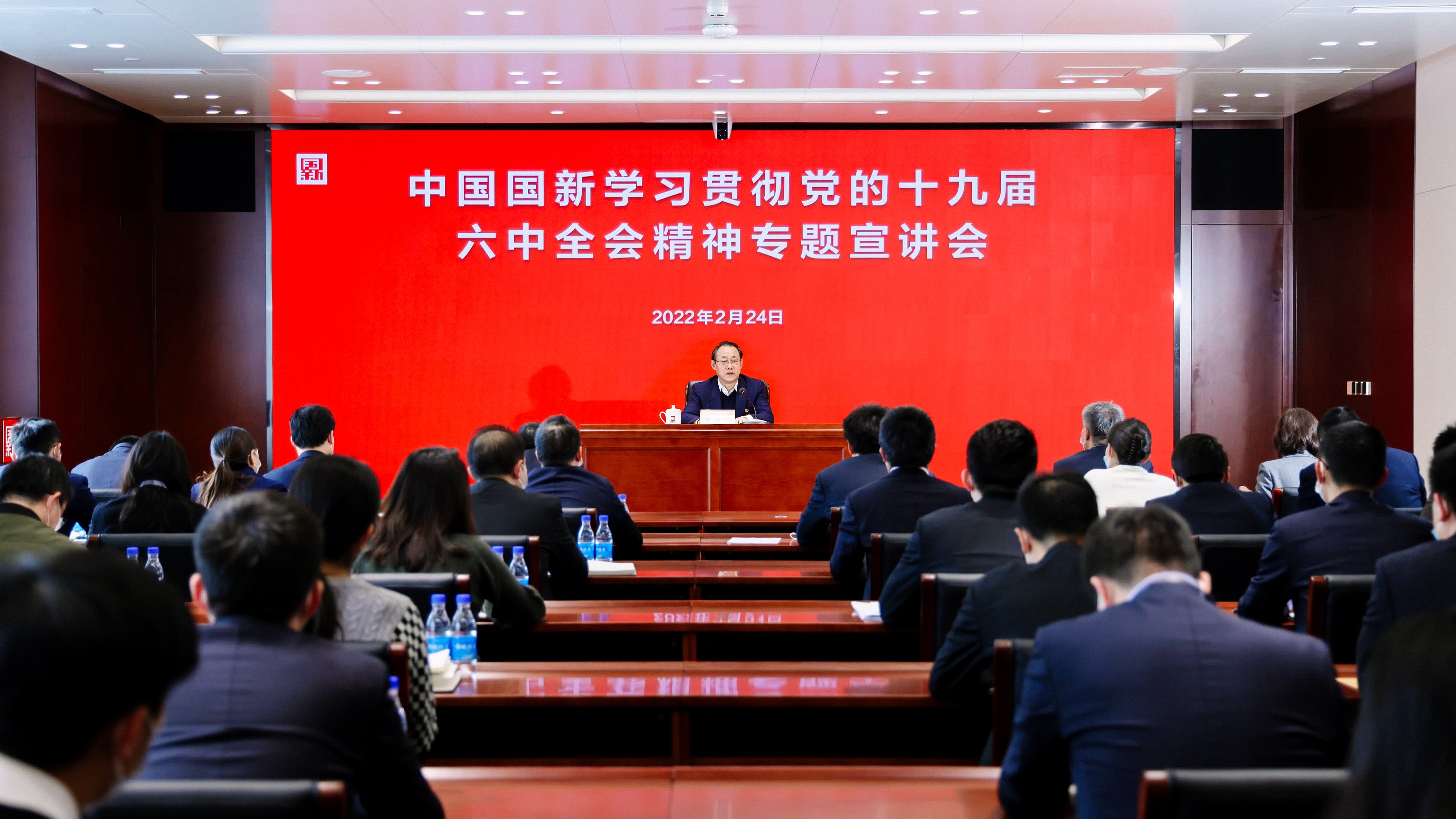 2月24日下午,中國國新黨委書記、董事長周渝波帶頭向組織關(guān)系所在黨支部和總部相關(guān)部門員工作學(xué)習(xí)貫徹黨的十九屆六中全會(huì)精神專題宣講,強(qiáng)調(diào)要把學(xué)習(xí)宣傳貫徹黨的十九屆六中全會(huì)精神作為當(dāng)前和今后一個(gè)時(shí)期的重大政治任務(wù),聚焦深入領(lǐng)會(huì)《中共中央關(guān)于黨的百年奮斗重大成就和歷史經(jīng)驗(yàn)的決議》(以下簡稱《決議》)重大意義,堅(jiān)持“兩個(gè)確立”,增強(qiáng)“四個(gè)意識(shí)”,堅(jiān)定“四個(gè)自信”,做到“兩個(gè)維護(hù)”,奮力譜寫公司高質(zhì)量發(fā)展新篇章。