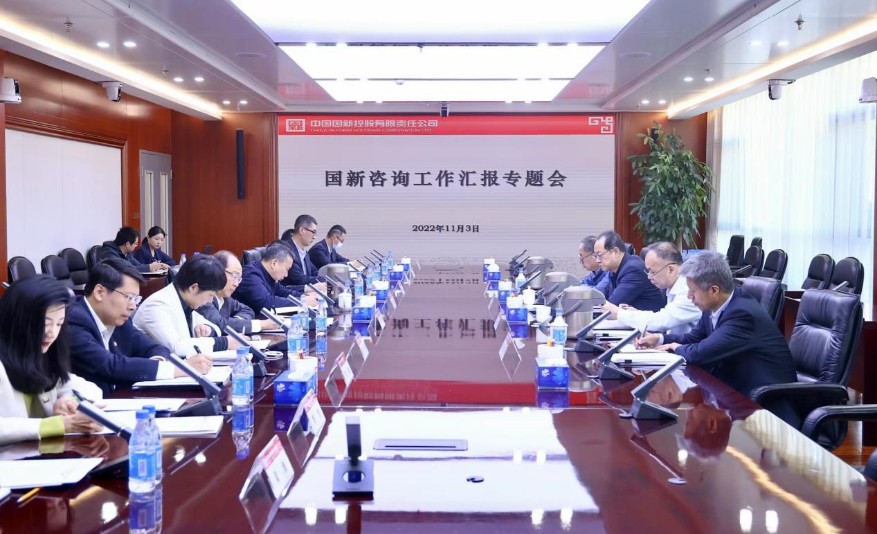 周渝波聽取了中國國新董事會秘書、國新發(fā)展董事長、國新咨詢董事長唐玉立的工作匯報,詳細詢問了“國新資訊”系列產(chǎn)品和ESG業(yè)務(wù)開拓情況。周渝波對國新咨詢籌建以來的相關(guān)工作予以肯定。他指出,國新咨詢板塊的組建,是中國國新黨委經(jīng)過反復(fù)醞釀研究做出的決策部署,是適應(yīng)國新下一步發(fā)展需要的重要舉措。國新咨詢要加快打造具有國新特色的咨詢品牌,不斷提升影響力。一是高舉高打、主動發(fā)聲。要突出國有資本運營公司特點,突出研究專業(yè)性、前瞻性、權(quán)威性,提升“國新資訊”產(chǎn)品含金量,發(fā)國有資本運營公司價值之聲。二是加強專業(yè)能力建設(shè)。要堅持高標準、嚴要求,突出人才的“專業(yè)驅(qū)動”,以緊抓不放、常抓不懈的責(zé)任感,為咨詢板塊下一步發(fā)展夯實堅實基礎(chǔ)。三是加強業(yè)務(wù)協(xié)同。全面梳理咨詢板塊與基金投資、股權(quán)運作、直接投資等業(yè)務(wù)板塊在ESG等方面的合作機會,將已投項目作為重點營銷、協(xié)同客戶深入挖掘。四是加強人才隊伍建設(shè)。加強文化融合,不斷營造咨詢板塊一家人、一家親的良好氛圍。五是不斷加強黨的領(lǐng)導(dǎo)和黨組織建設(shè),逐步完善治理體系。黨的二十大明確了新時代新征程上國資央企的使命任務(wù)。要把學(xué)習(xí)宣傳貫徹黨的二十大精神作為當(dāng)前和今后一個時期的首要政治任務(wù),認認真真、原汁原味學(xué)習(xí)理解把握好黨的二十大報告的精神實質(zhì)、重要要求和重點任務(wù),把思想和行動統(tǒng)一到重要講話精神上來,以實際行動踐行“兩個維護”,將學(xué)習(xí)成果轉(zhuǎn)化為國新咨詢良好開局、平穩(wěn)起步的工作實效。