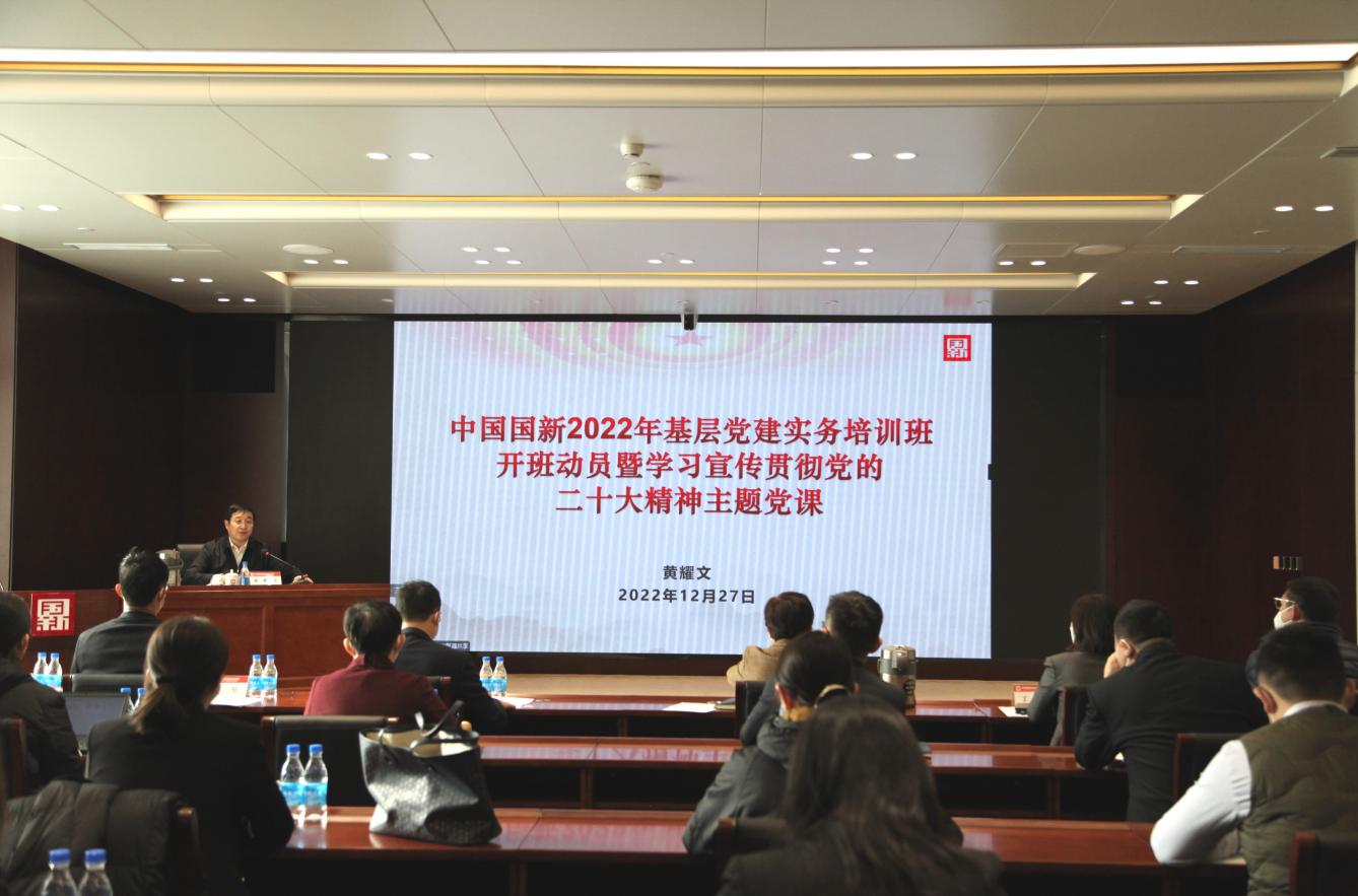 為深入學習貫徹黨的二十大精神,提升中國國新全系統基層黨務干部能力素質,12月27日,中國國新黨校舉辦公司2022年基層黨建實務培訓班。公司黨委副書記、董事黃耀文出席開班式并以專題黨課形式作培訓動員。