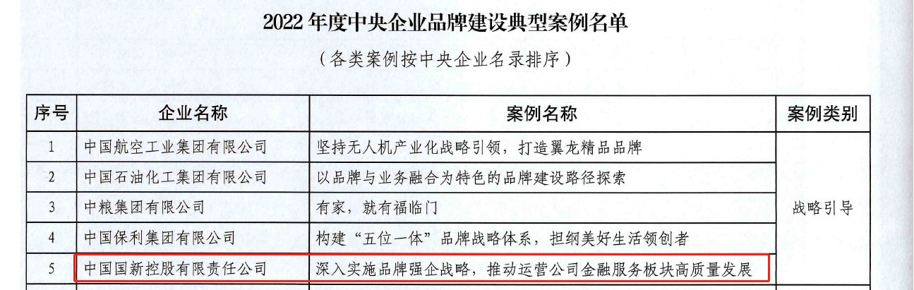 日前,國務(wù)院國資委公布了“2022年度國有企業(yè)品牌建設(shè)典型案例和優(yōu)秀品牌故事名單”。中國國新選送的《深入實(shí)施品牌強(qiáng)企戰(zhàn)略,推動運(yùn)營公司金融服務(wù)板塊高質(zhì)量發(fā)展》案例入選“2022年度中央企業(yè)品牌建設(shè)典型案例”。