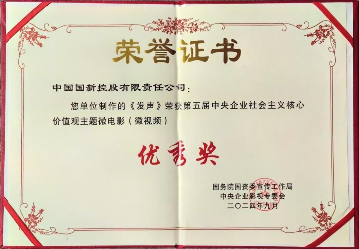 9月27日,國務(wù)院國資委在京舉行第五屆中央企業(yè)社會主義核心價值觀主題微電影(微視頻)展映發(fā)布活動,中國國新報送作品《發(fā)聲》獲優(yōu)秀獎。