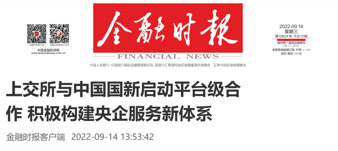 近期,上海證券交易所與中國國新控股有限責(zé)任公司簽署《戰(zhàn)略合作協(xié)議》,受到媒體廣泛關(guān)注。9月14日,《金融時報》刊載《上交所與中國國新啟動平臺級合作?積極構(gòu)建央企服務(wù)新體系》一文,現(xiàn)將全文分享如下: