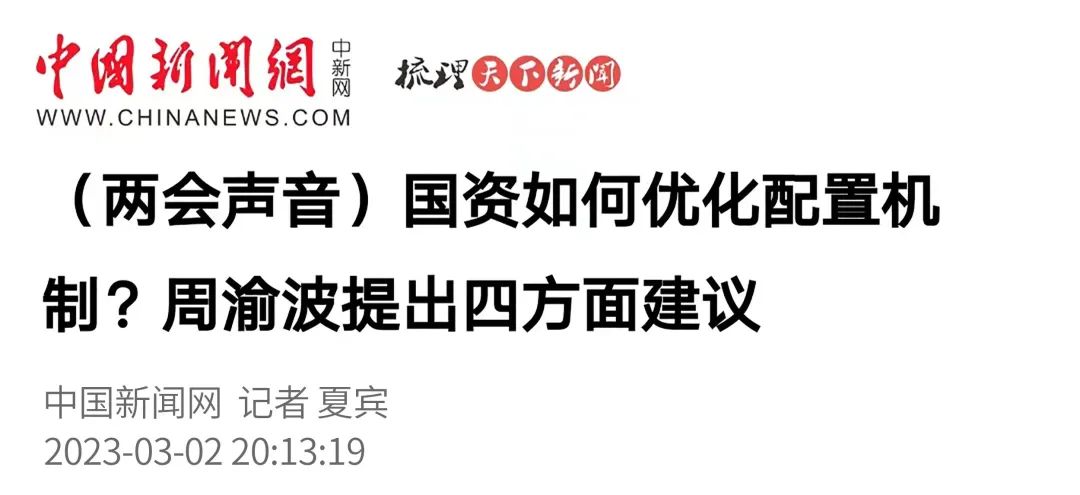 3月2日,中國新聞社聚焦兩會(huì)聲音,圍繞國資優(yōu)化分配機(jī)制,采訪全國政協(xié)委員,中國國新黨委書記、董事長周渝波,并刊發(fā)《國資如何優(yōu)化配置機(jī)制?周渝波提出四方面建議》一文。現(xiàn)將全文分享如下: