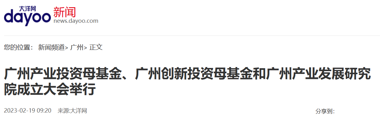 2月18日,廣州產(chǎn)業(yè)投資母基金、廣州創(chuàng)新投資母基金和廣州產(chǎn)業(yè)發(fā)展研究院成立大會(huì)在廣州白云國(guó)際會(huì)議中心舉行。中國(guó)國(guó)新黨委副書記、董事黃耀文出席活動(dòng),廣州日?qǐng)?bào)大洋網(wǎng)發(fā)布《廣州產(chǎn)業(yè)投資母基金、廣州創(chuàng)新投資母基金和廣州產(chǎn)業(yè)發(fā)展研究院成立大會(huì)舉行》一文,報(bào)道相關(guān)情況。現(xiàn)將全文分享如下: