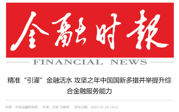 5月20日,金融時報發布《精準“引灌”金融活水 攻堅之年中國國新多措并舉提升綜合金融服務能力》,報道中國國新積極發揮國有資本運營公司功能作用,綜合運用專業化、多樣化的工具手段,面向中央企業提供差異化、特色化、數智化、一站式金融服務,助力實體經濟發展。現全文分享如下: